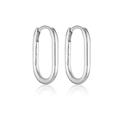 A fine everyday hoop earring that features an oval shape, with a click-style closure. Crafted in nickel-free sterling silver with a polished finish.