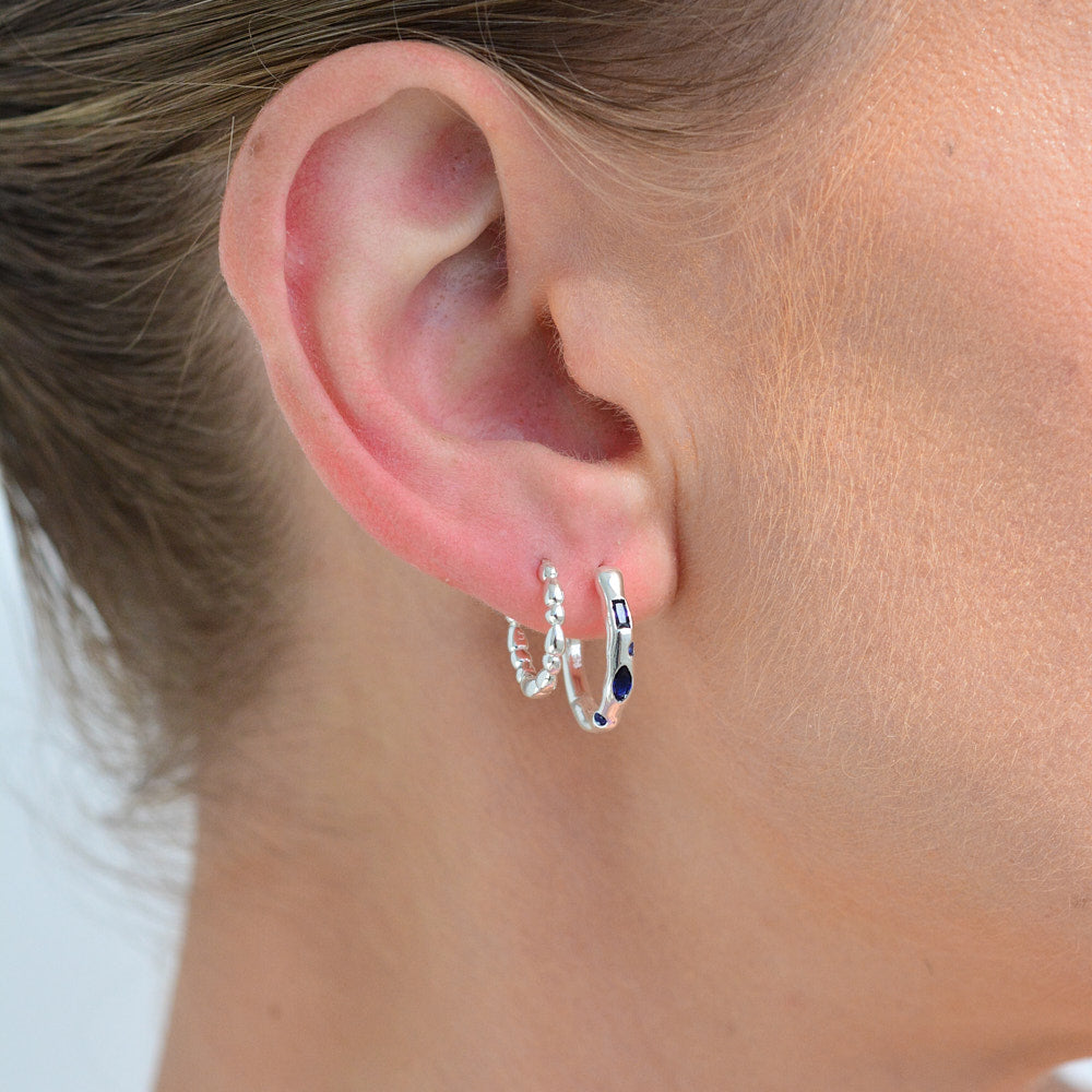 Organic bead-shaped forms of different sizes fuse together to create this pair of huggie earrings. Delicate but interesting, they make a great staple hoop earring for everyday wear.