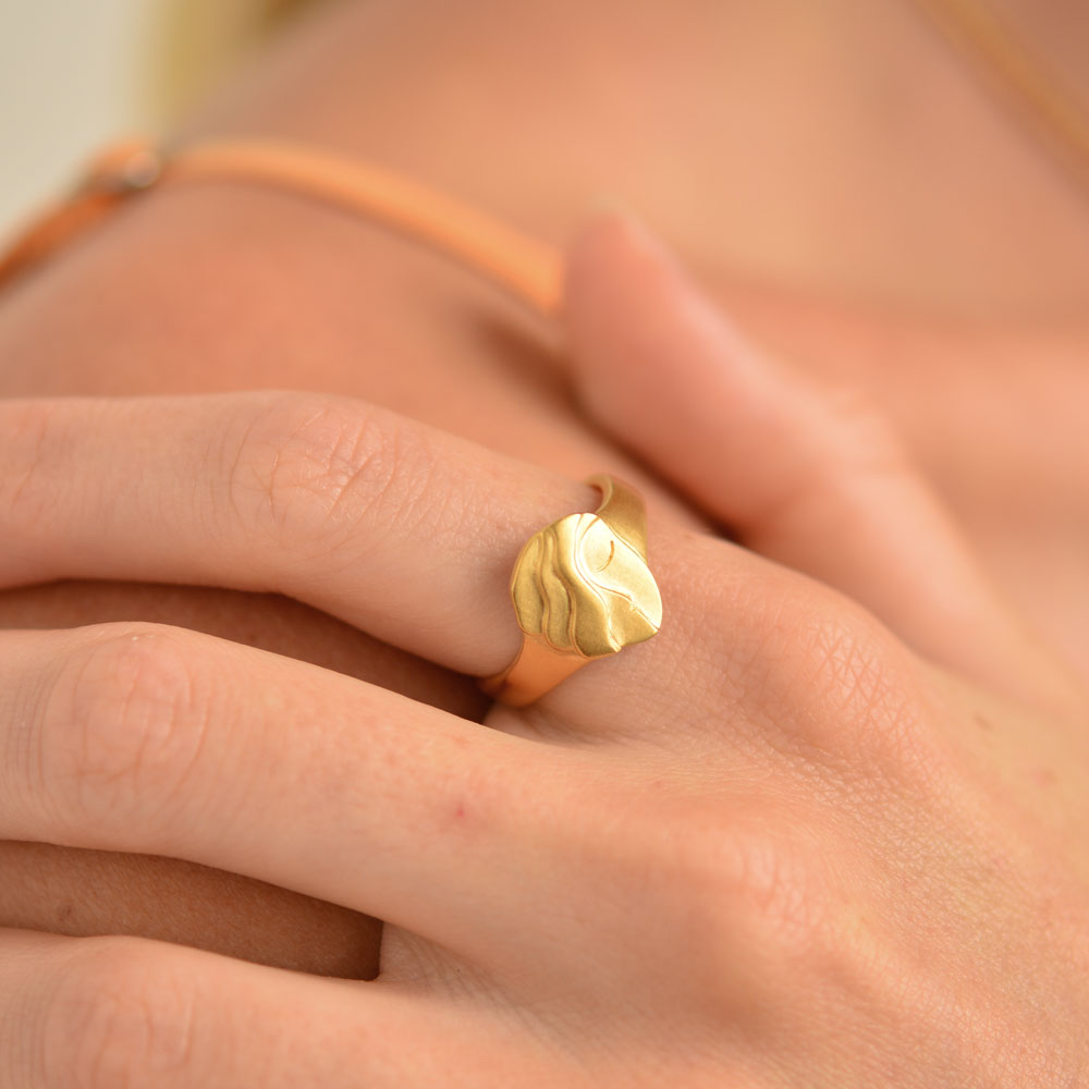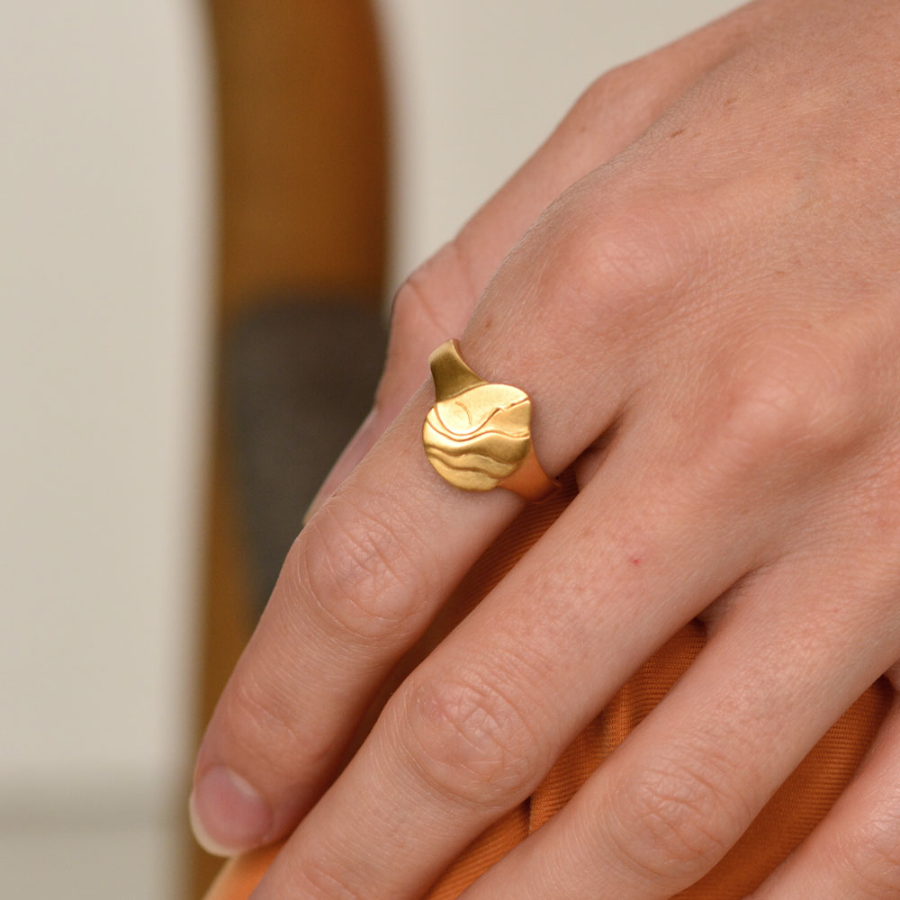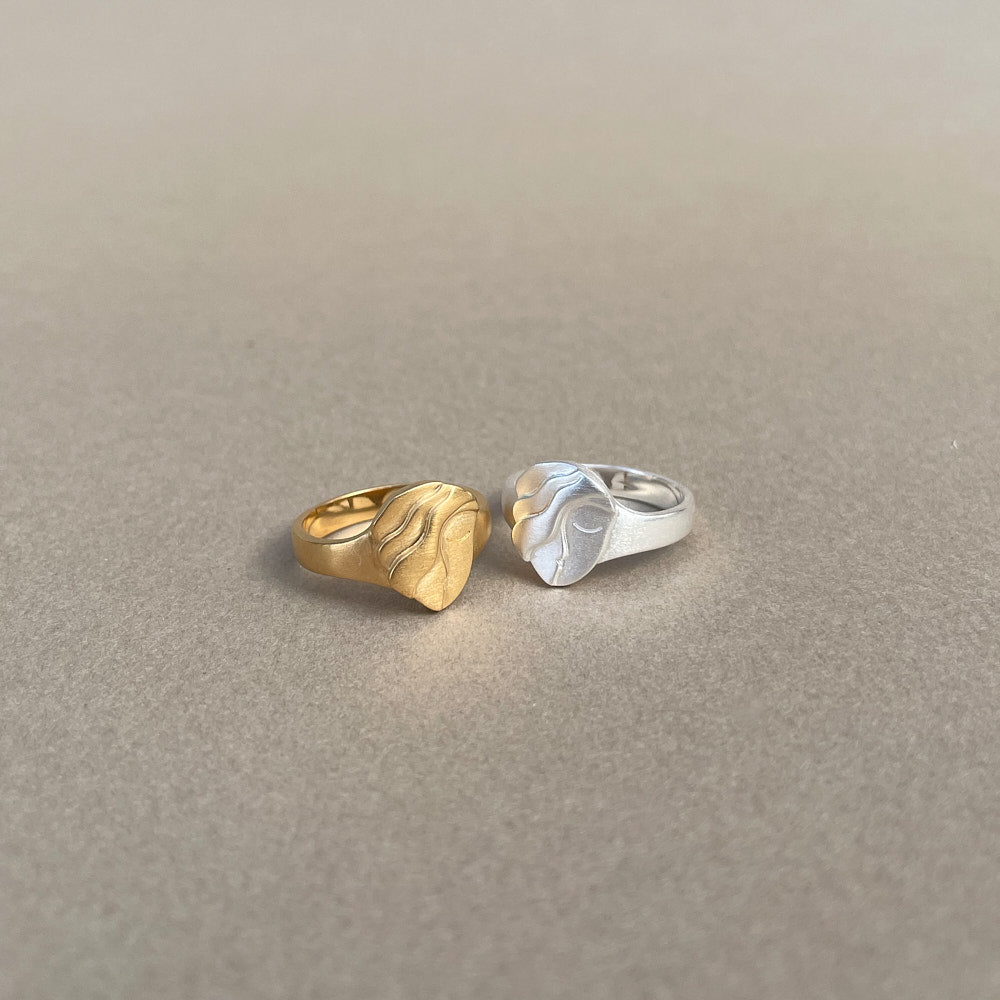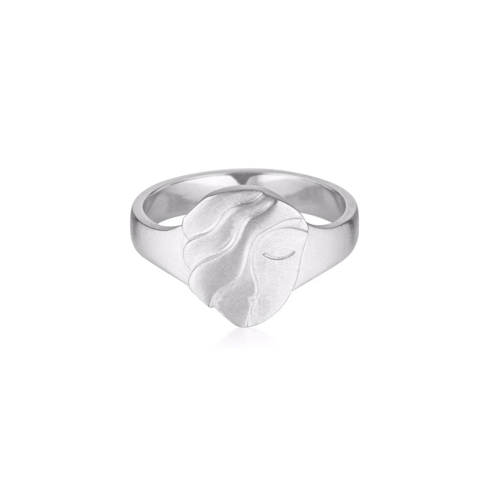 The goddess of love and beauty adorned on our Aphrodite ring, a modern take on the classic signet ring style. Hand-finished with a silky matte texture and crafted in recycled sterling silver.