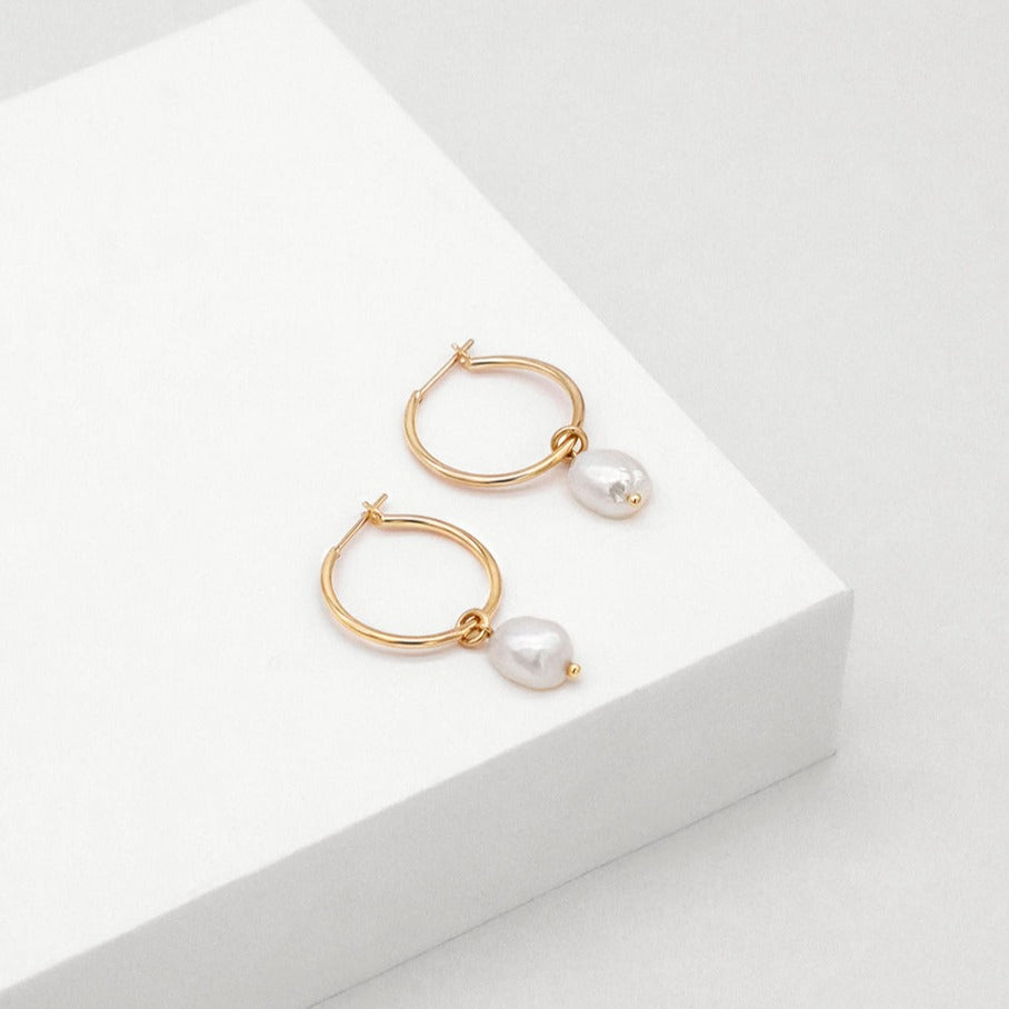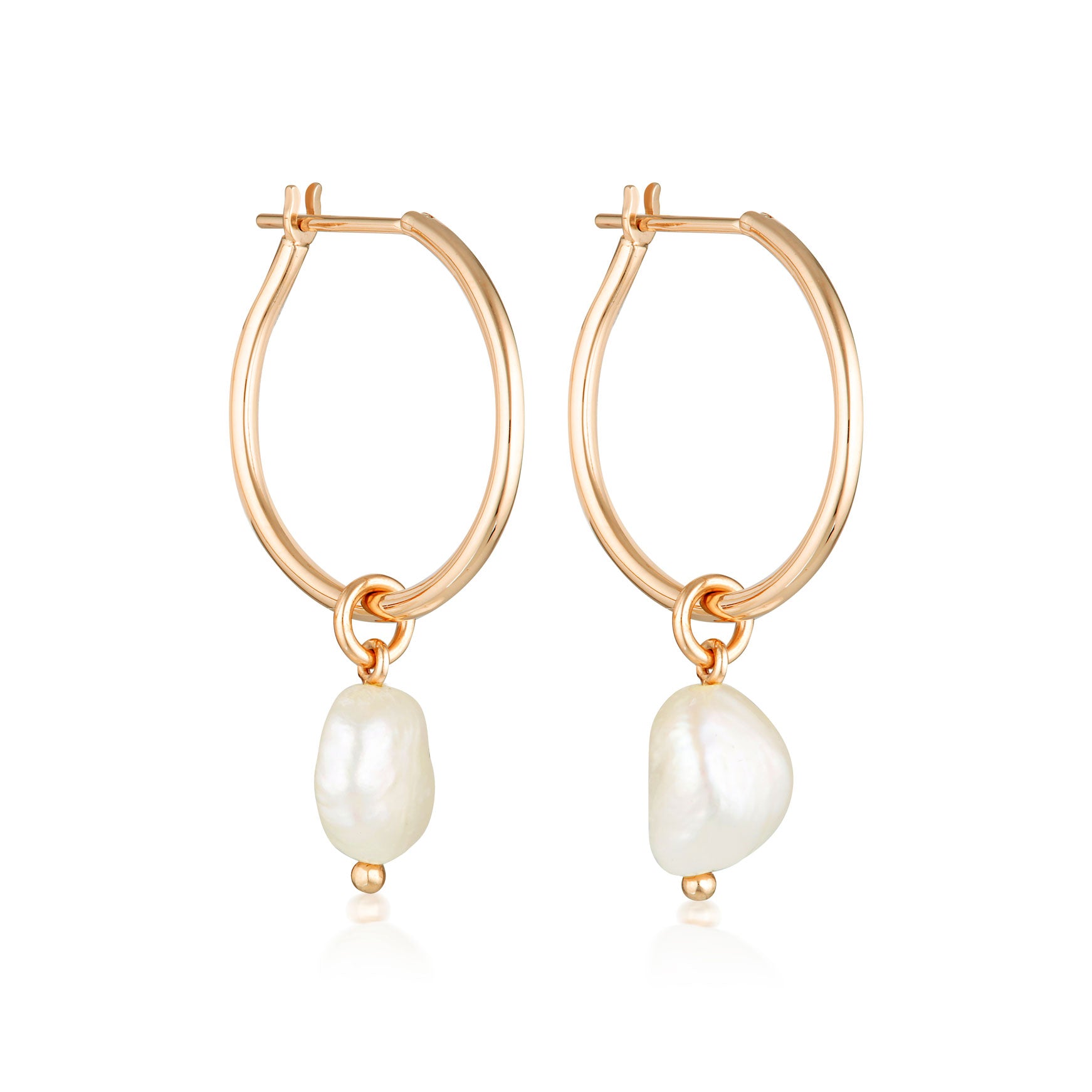 Our Baroque Pearl Willpower Hoop Earrings are a large hoop with a baroque freshwater pearl feature. Made with nickel-free sterling silver, featuring a polished texture.
