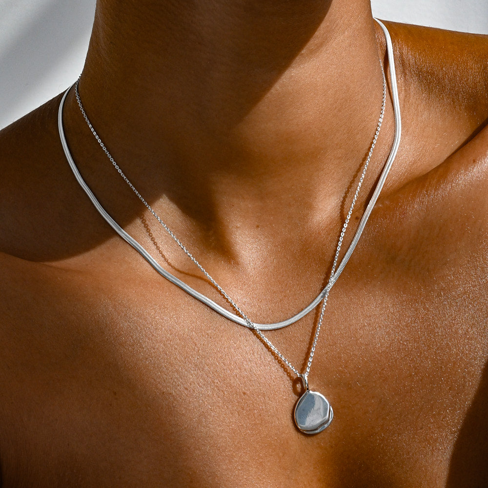 A classic piece that work with everything. Our Fluid Snake Necklace is a dream to wear with it snake life silky feel.