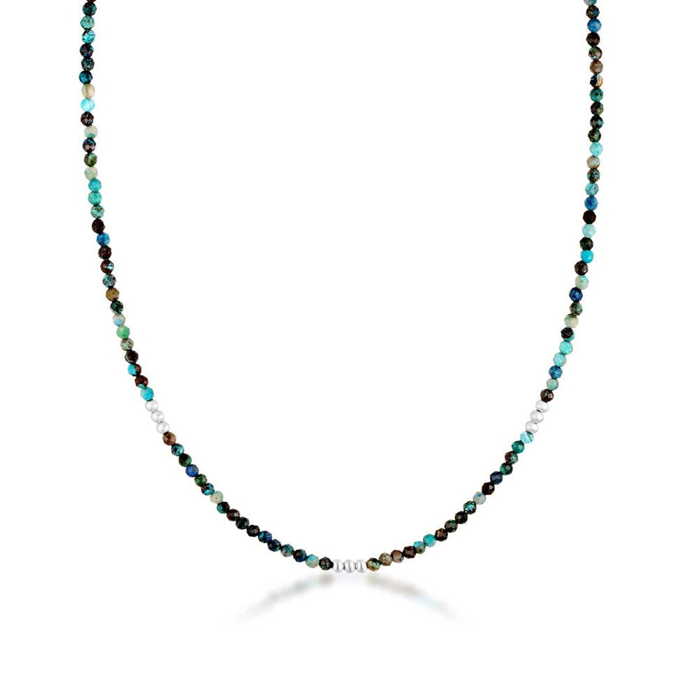 Our Mirage necklace is hand-strung and features natural Chrysoprase faceted gemstone beads and sterling silver beads. The perfect summer layering piece.