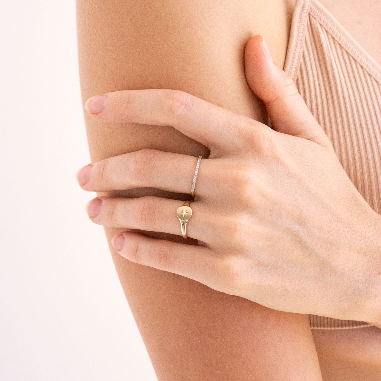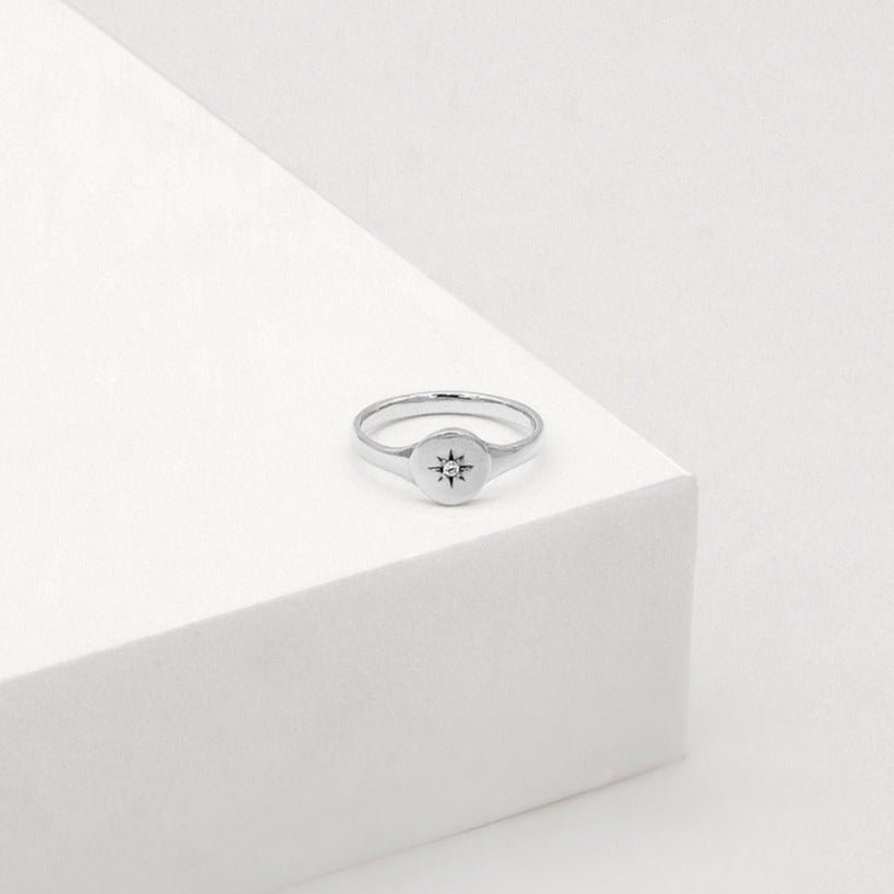 Our North Star Diamond Signet Ring is a precious and timeless signet style ring that is to be cherished for life. The North Star holds great symbolism of direction and hope. This ring is crafted in solid 9k gold and features a natural white diamond.