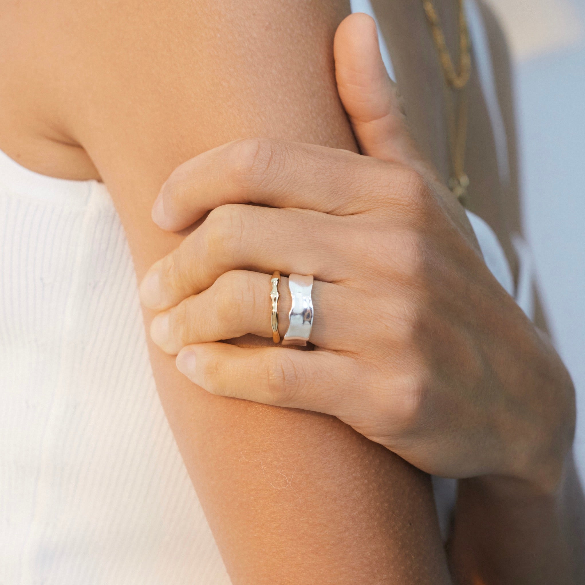 The Organica Wide Ring is inspired by organic forms found in the natural world. Emulating silhouettes of flower branches, vines and Neptune's necklace.