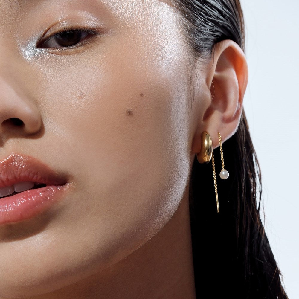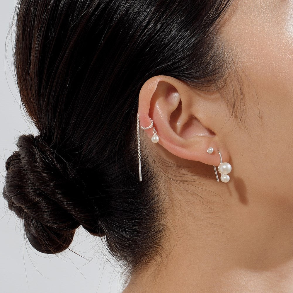 Delicate thread earrings featuring Freshwater Pearls. Each thread features a 4mm pearl.