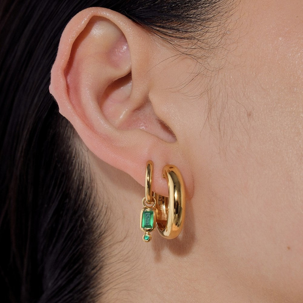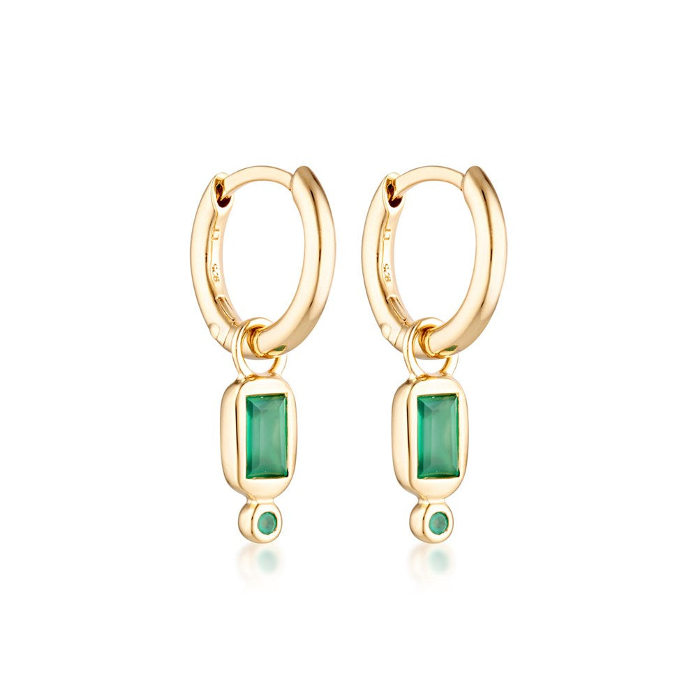 Our Classic Huggie Earrings, featuring the Raya Earring Charms in natural Green Onyx. Charms are removable, so can be worn with or without the charm. Please note: Natural stones vary in colour and tone (and screens show colour differently), so the colour may be different from what shows on your screen.