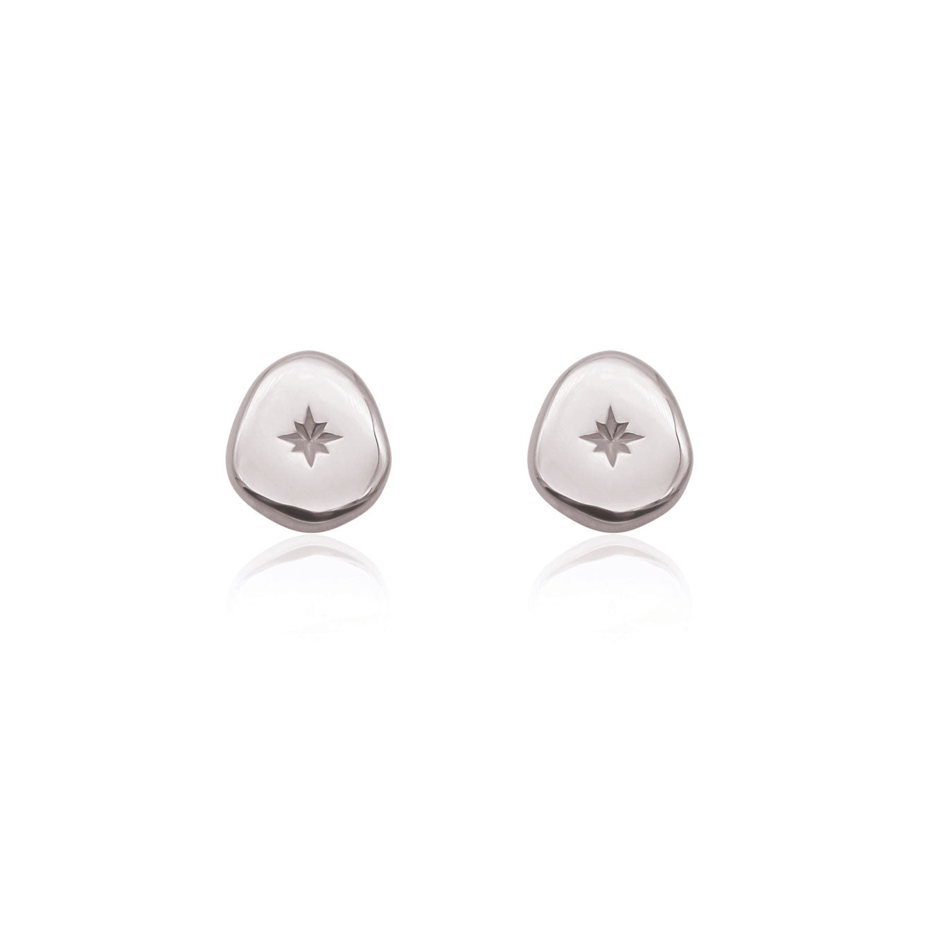 Our Vega Stud Earrings feature an engraved star design. They are crafted in nickel-free sterling silver with a polished finish.